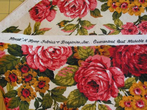 This vintage fabric dates to the 1960-70's. It is a medium weight Home Décor or drapery fabric. It features large bouquets of roses in shades of red, pink, and goldish orange on an oatmeal colored background. The selvage is printed with, "House N Home Fabrics and Draperies inc. Best Washable Colors…" Very good unused yardage. No holes or stains. Price is for a piece that measures selvage to selvage 46"W x 43"L.